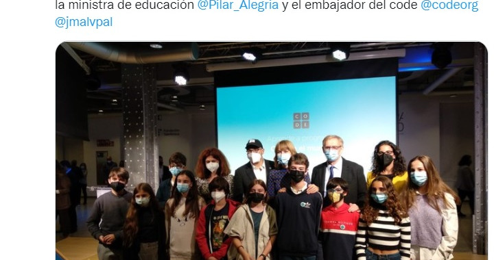 NUESTROS ALUMNOS CON LA MINISTRA PILAR ALEGRÍA Y HADI PARTOVI EN LA PRESENTACIÓN DE CODE.ORG